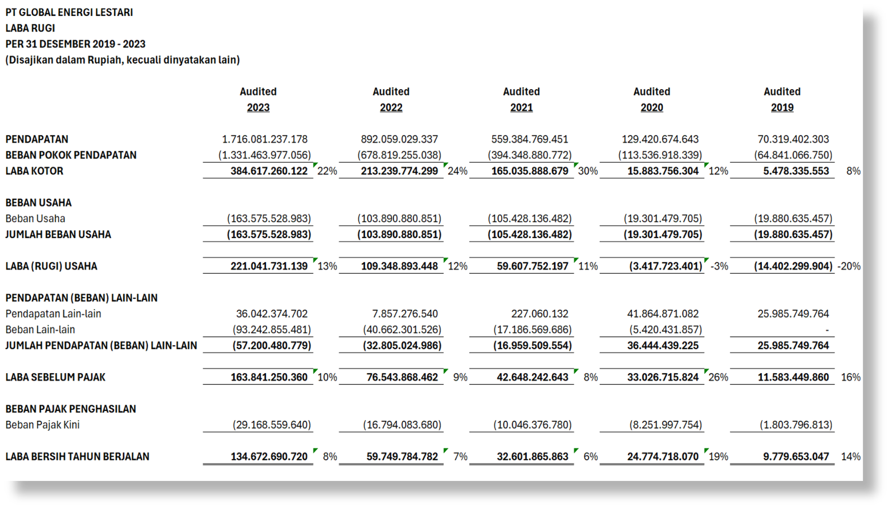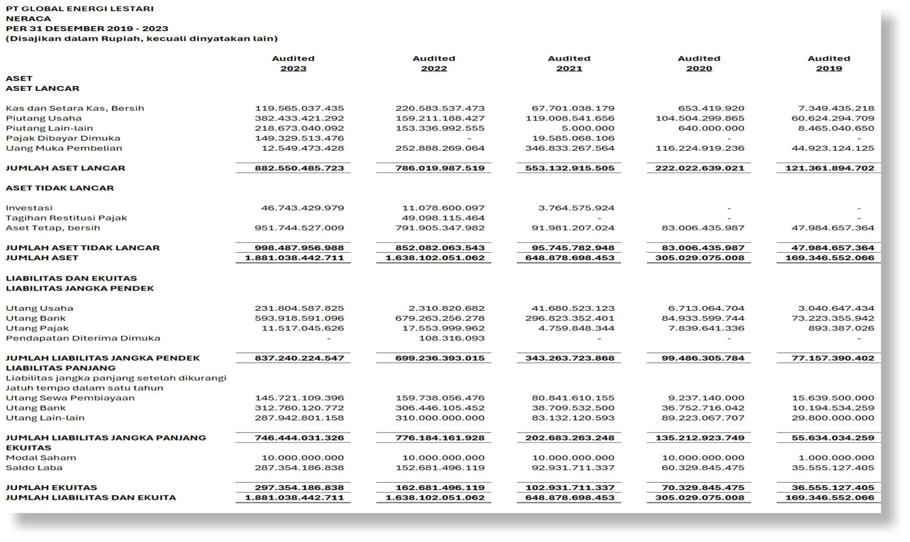 GLOBAL ENERGI LESTARI | Laporan Keuangan