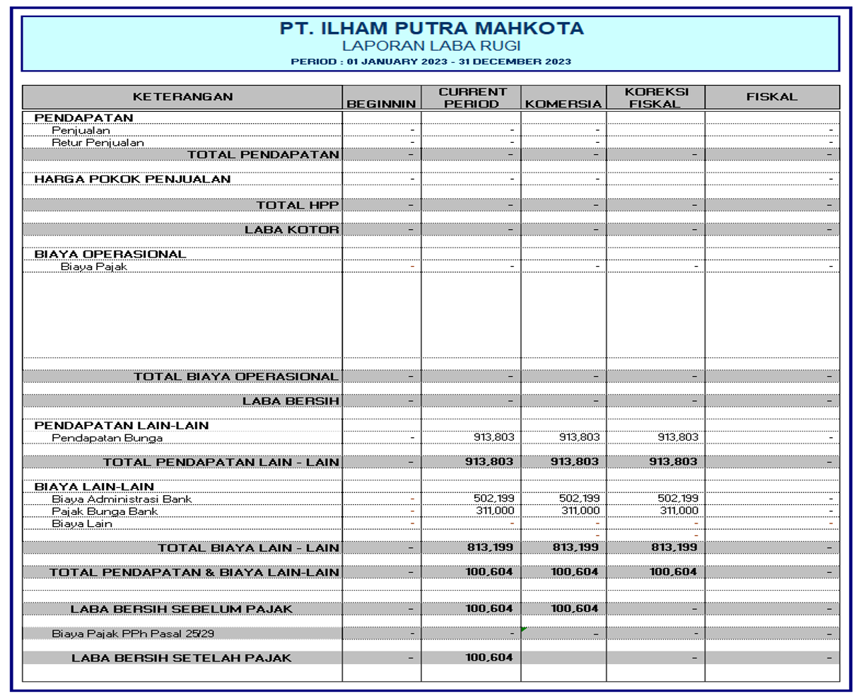 ILHAM PRIMA MAHKOTA | Laporan Keuangan